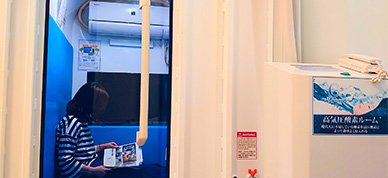 ルーム内の気圧を高め酸素をガス化させることにより、血液に溶け込みやすい酸素を作り出し体の隅々まで酸素を行き渡らせることができます。